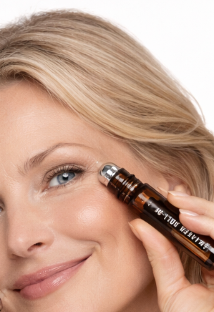 A visibly awakening, ultra-concentrated botanical eye serum in a sleek roll-on applicator.